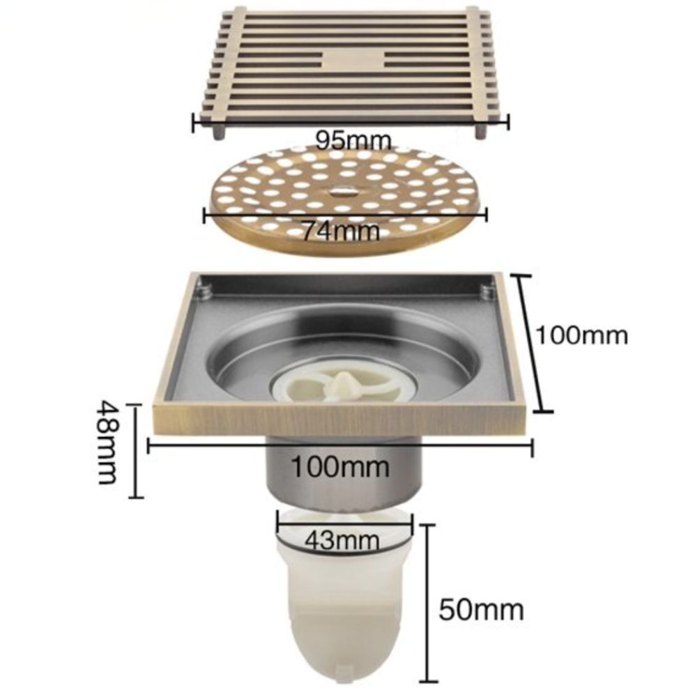 Трап канализационный прямой, 40 мм, 100х100 мм, Gappo, латунь, бронза, G81004-4