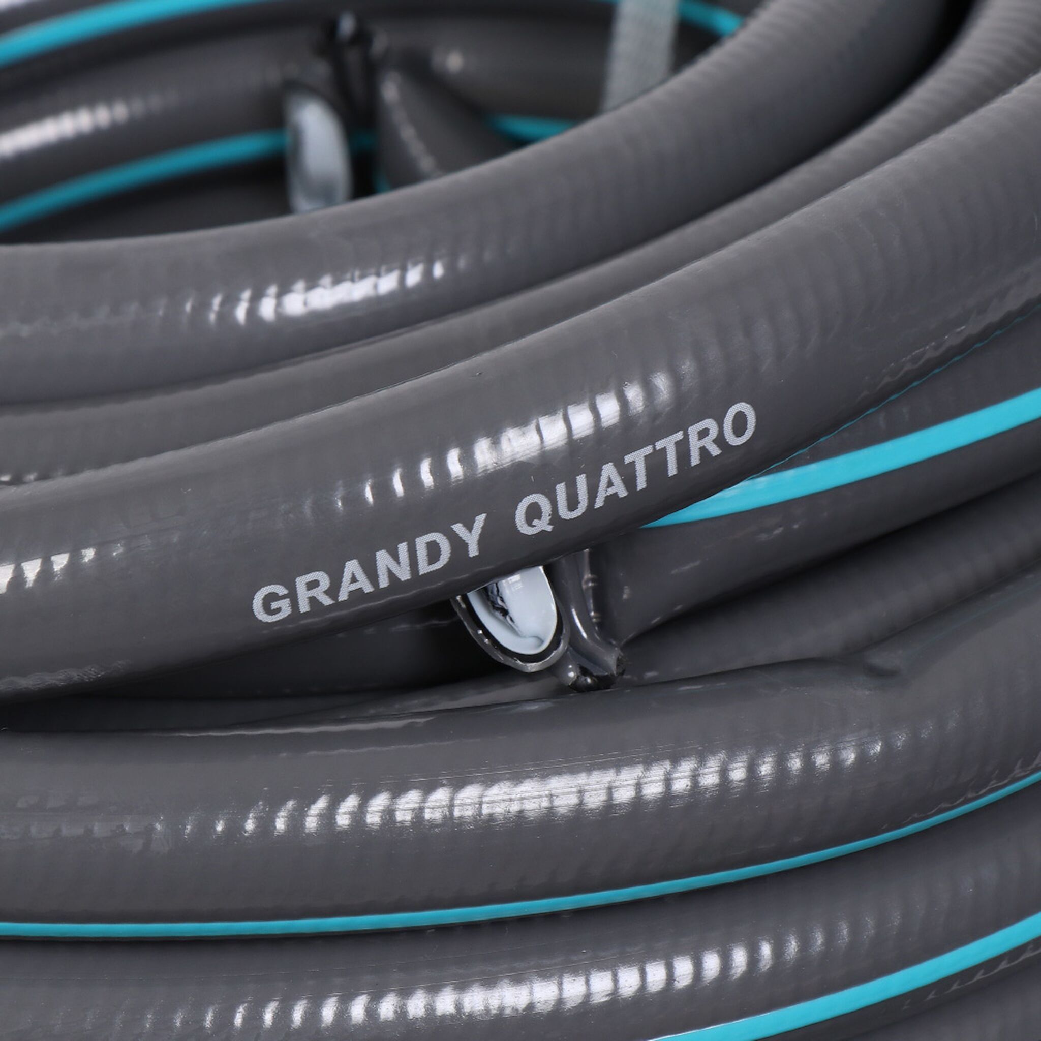 Шланг Grandy используется для поливочных работ на садово-огородных участках. Четырехслойный. Он выполнен из высококачественного первичного ПВХ, что делает его прочным и долговечным. Благодаря армированию прочной полиэсторовой нитью, шланг устойчив к механическому воздействию и перегибам.