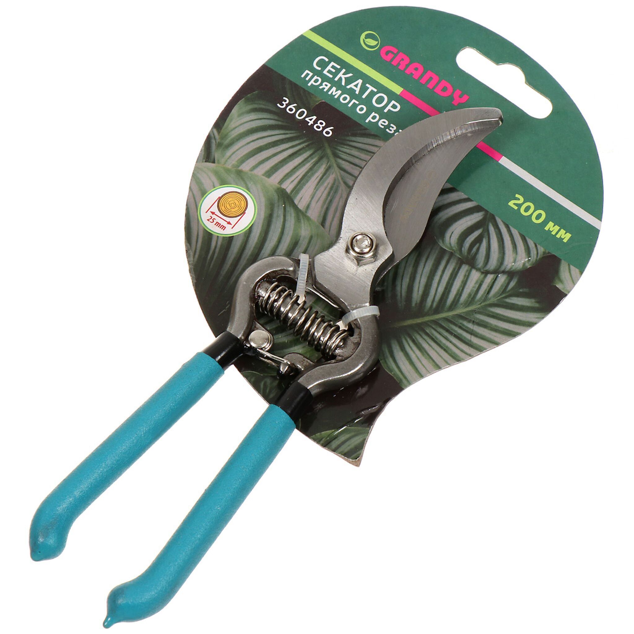 Секатор Grandy предназначен для выполнения работ по уходу за садом. Секатор с прямым резом, обрезиненными рукоятками и боковым фиксатором. Рекомендуется для обрезки живых веток диаметром до 15 мм.