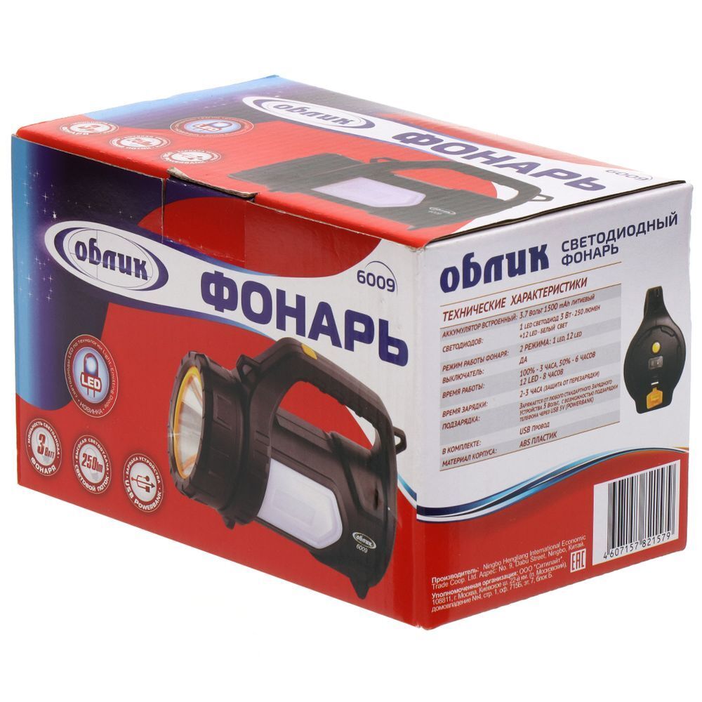 Время работы: 100% - 3 часа / 50% - 6 часов / 12 LED 8 часов / 6 LED - 10 часов.