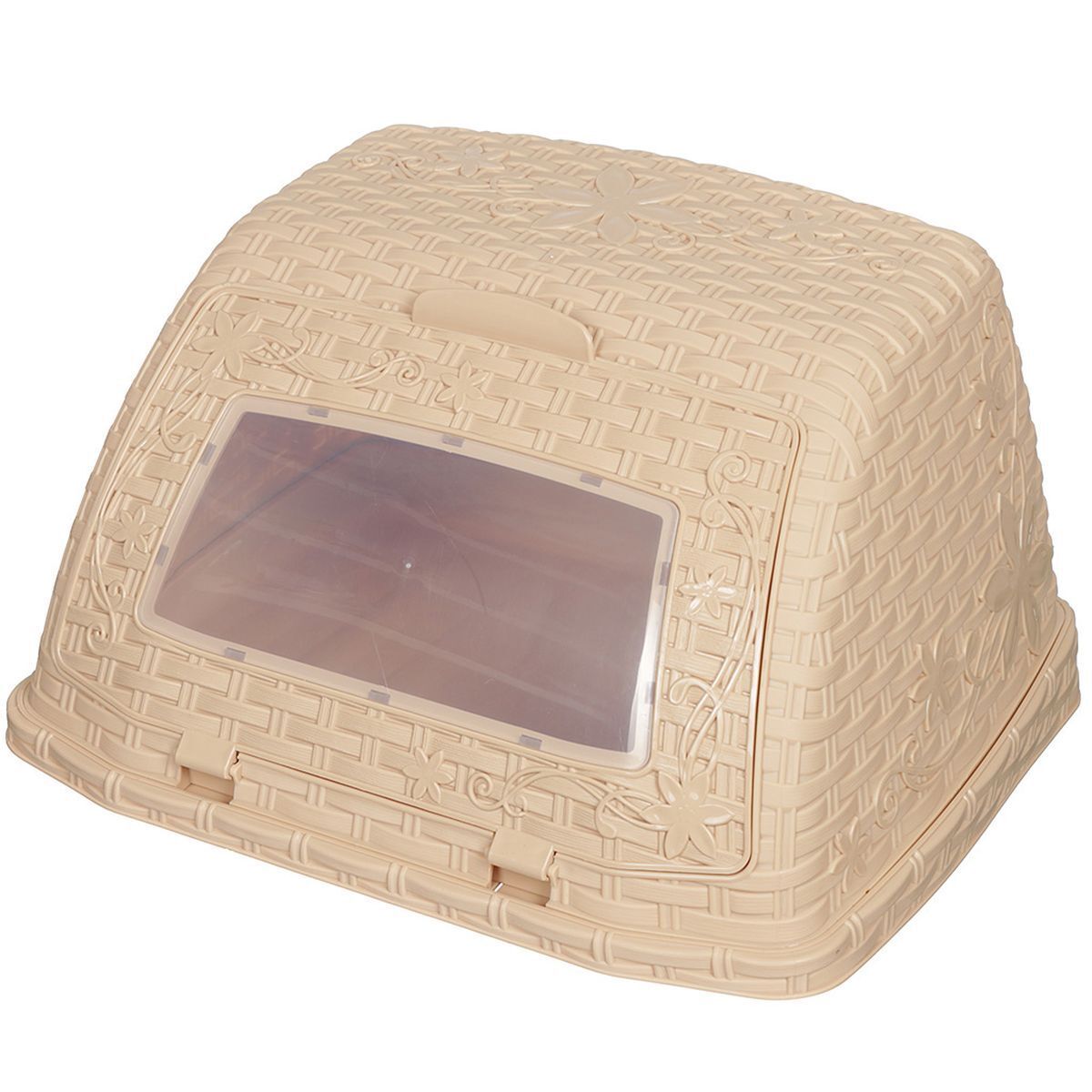 Хлебница «Плетёнка» позволяет сохранить свежесть и мягкость хлебобулочных изделий. Откидная крышка на защёлке удобна для частого открывания и закрывания изделия. Поэтому эту хлебницу можно использовать в местах общественного питания. Прозрачное окошко на крышке позволяет видеть содержимое хлебницы. Изделие изготовлено из качественного пластика, разрешённого для контакта с пищевыми продуктами.