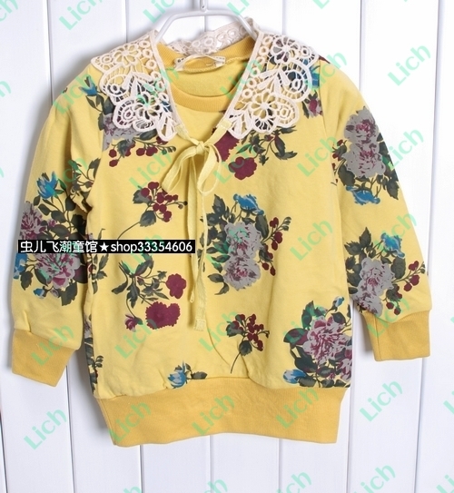 Толстовка детская с цветочным принтом и кружевным воротничком