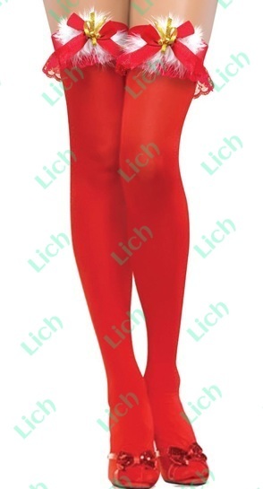 Чулки новогодние красные на резинке с бантами и бубенчиками