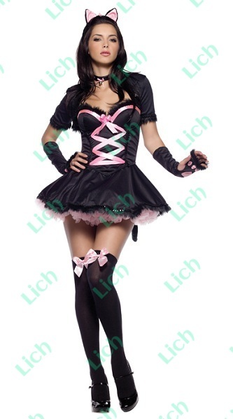 Увидев вас в этом очаровательном костюме, каждый мужчина задумается, почему в его доме до сих пор нет такой киски. Ласковая, но готовая царапать спинку в порыве страсти… Трущаяся о спину своими мяконькими ушками и нежно кусающаяся за шейку… Гламурная кошечка – мечта любого посетителя Halloween-party! Костюм состоит из платья, ушек, накидки, украшения на шею.