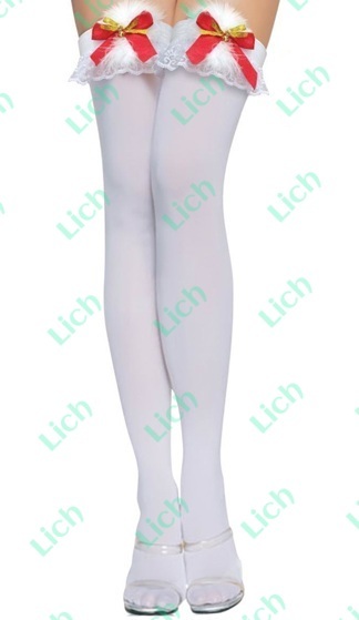 Чулки новогодние белые на резинке с бантами и бубенчиками