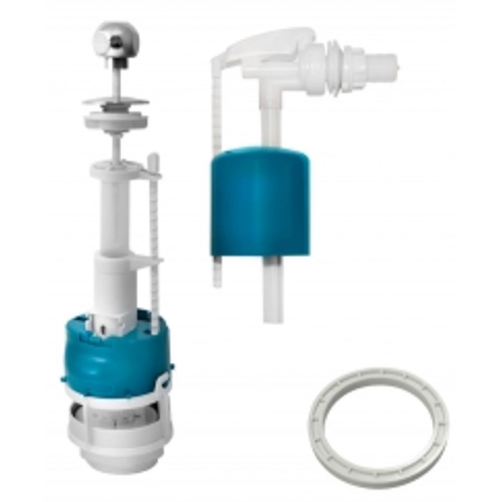 Комплект арматуры для бачка к унитазу. Сливной клапан СБа штоковый (для слива необходимо поднять ручку вверх и отпустить).