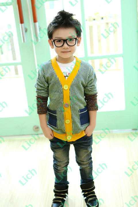 Кардиган детский с контрастной отделкой разной фактуры