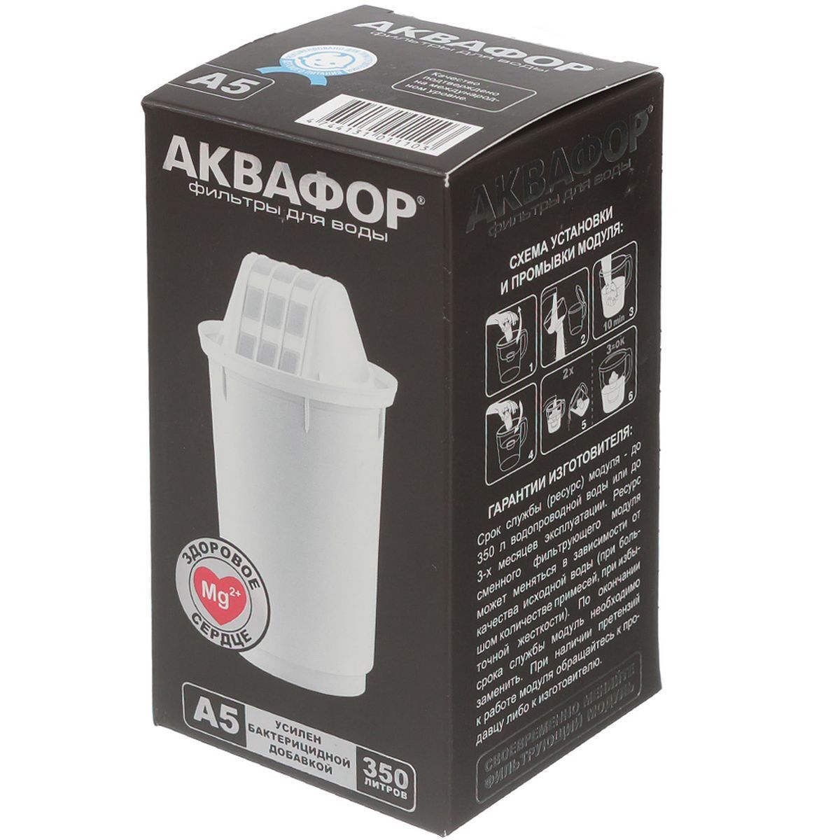Картридж А5 содержит природный минерал - перламутровый доломит, который сохраняет магний. Он легко усваивается и предотвращает заболевания сердца и сосудов. Используется в кувшинах Аквафор c круглым гнездом посадки картриджа диаметром 7 см: "Аквафор Арт", "Аквафор Гарри", "Аквафор Гратис", "Аквафор Кантри", "Аквафор Премиум", "Аквафор Престиж", "Аквафор Триумф", "Аквафор Ультра".