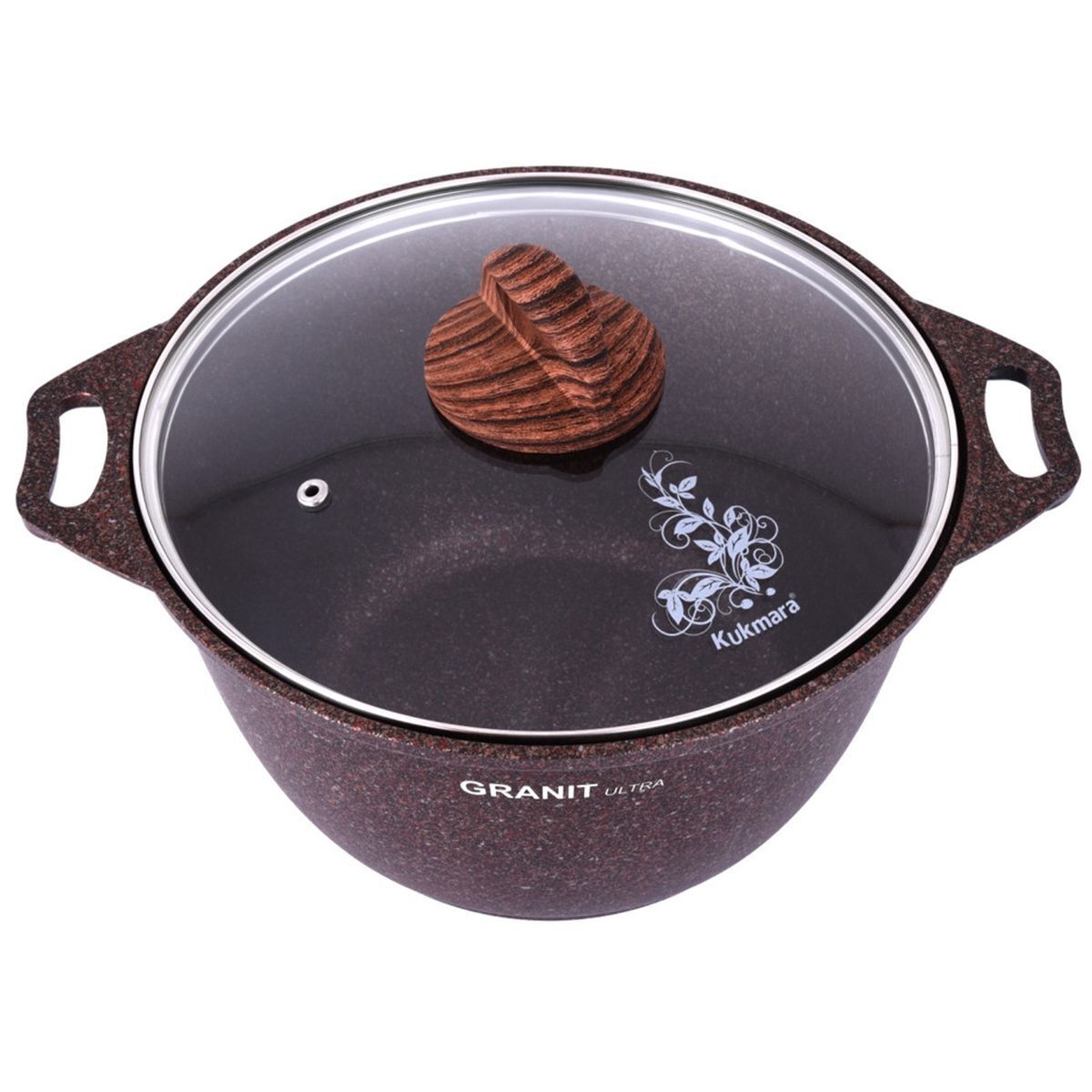 Кастрюля "Kukmara" изготовлена из литого алюминия и покрыта уникальным ультрапрочным антипригарным покрытием «Ultra granit».
