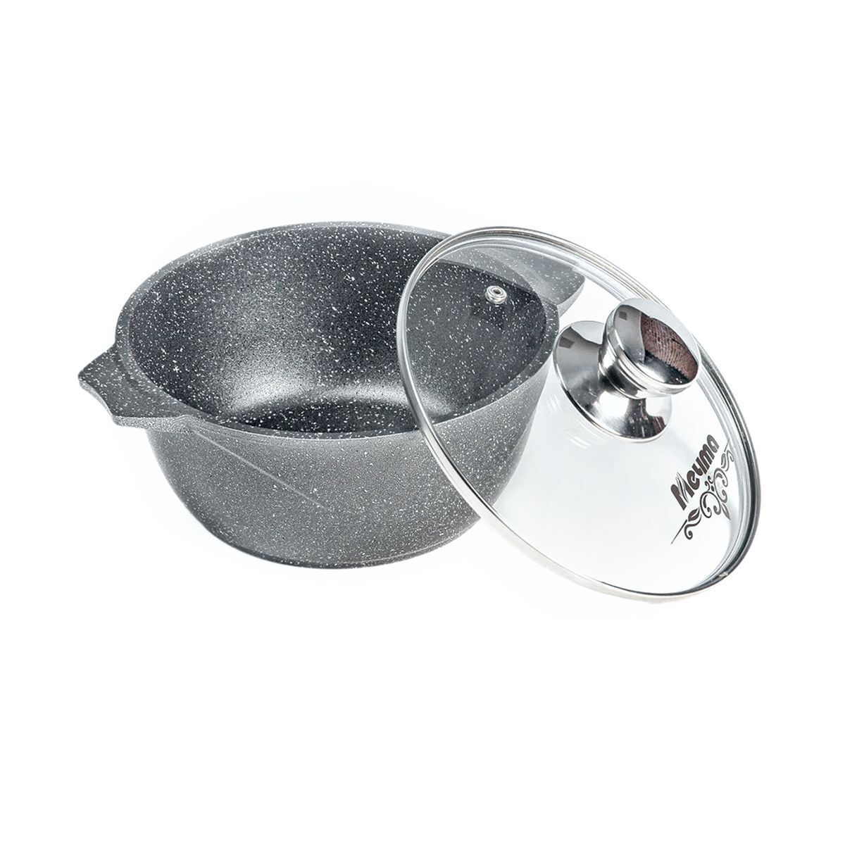 Кастрюля Гранит отлита из высококачественного пищевого алюминия. Обладает быстрым нагревом и равномерным распределением тепла по всей поверхности. Преимуществом кастрюли Гранит с антипригарным покрытием является то что во время варки к её дну не прилипают крахмальные и мучные изделия: макароны, пельмени, вареники. Достаточно мягкой губки с мыльной водой, чтобы кастрюля снова была готова к использованию. Кастрюля гранит из литого высококачественного пищевого алюминия «Мечта» станет незаменимым инструментом и надежным помощником на вашей кухне.