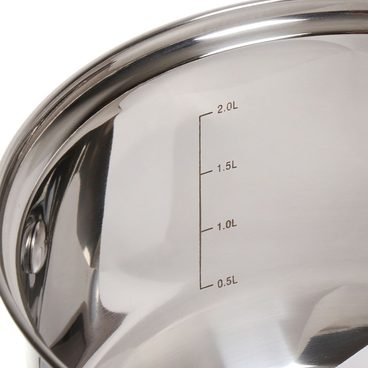 Кастрюля линейки "Элис" изготовлена из высококачественной нержавеющей стали. На внешние стенки нанесена стильная комбинированная полировка, а на внутренней стороне мерная шкала.