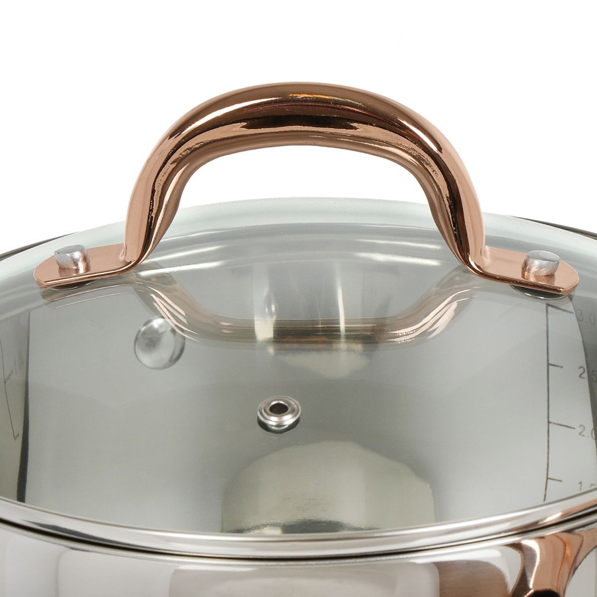 Трехслойное капсулированное дно долго удерживает тепло, что способствует экономии энергии.