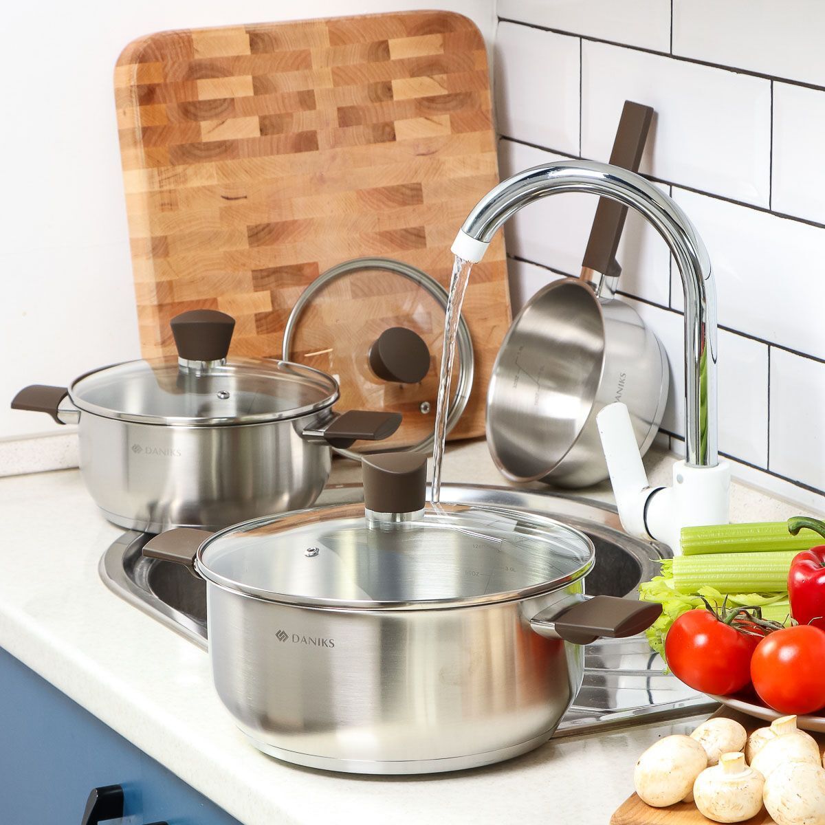 Посуда сделана из высококачественной нержавеющей стали марки 18/0.