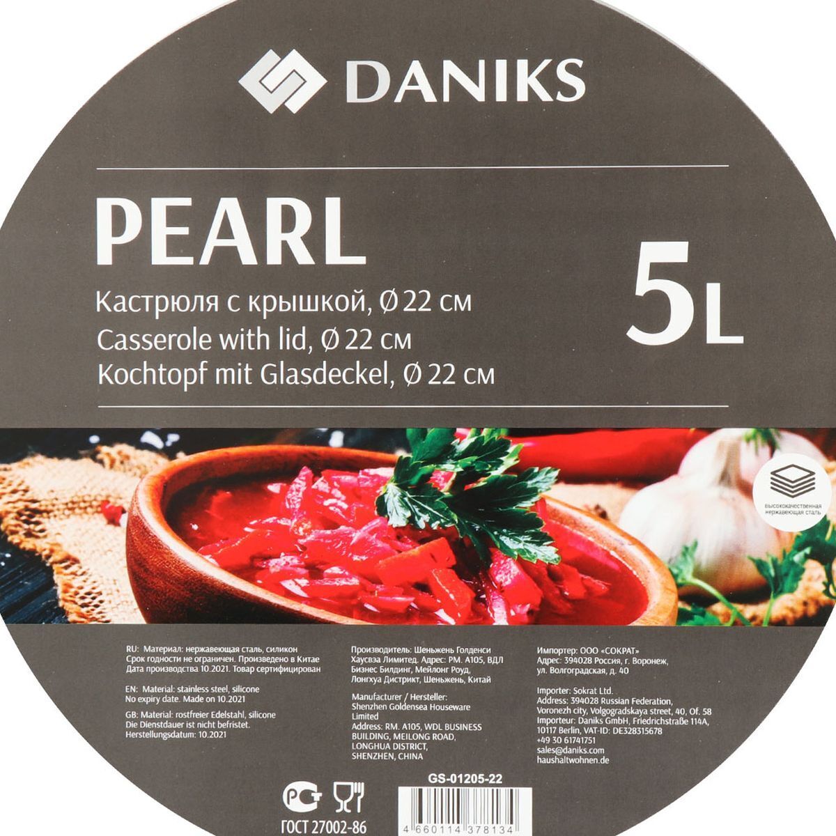 «Кастрюля нержавеющая сталь, 5 л, с крышкой, крышка стекло, Daniks, Перл, GS-01205-22, индукция» можно купить мелким, средним и крупным оптом по привлекательным ценам благодаря тому, что мы сотрудничаем с российскими и международными производителями напрямую, без посредников.
