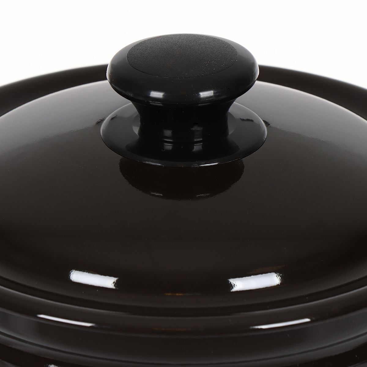 На дне изделий без ободка допускаются «точки» - следы от иголок, на которые изделие ставится и обжигается в печи. На изделиях с ободком таких следов нет, т.к. для обжига они ставятся вверх дном, а борт затем закрывается ободком из нержавеющей стали.