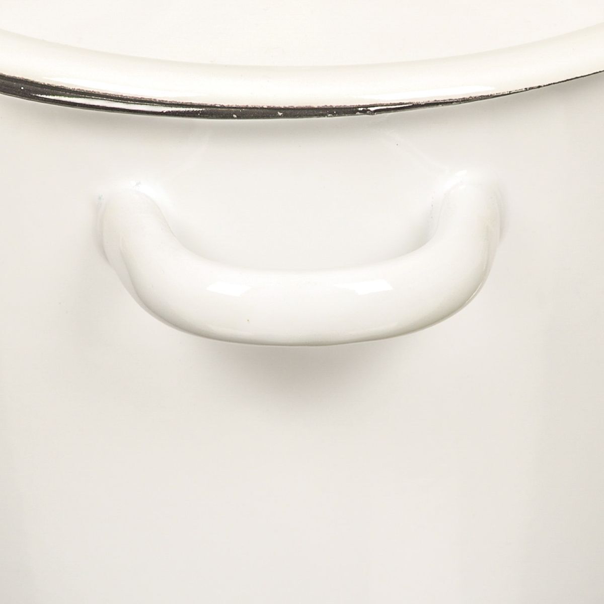 На дне изделий без ободка допускаются «точки» - следы от иголок, на которые изделие ставится и обжигается в печи. На изделиях с ободком таких следов нет, т.к. для обжига они ставятся вверх дном, а борт затем закрывается ободком из нержавеющей стали.