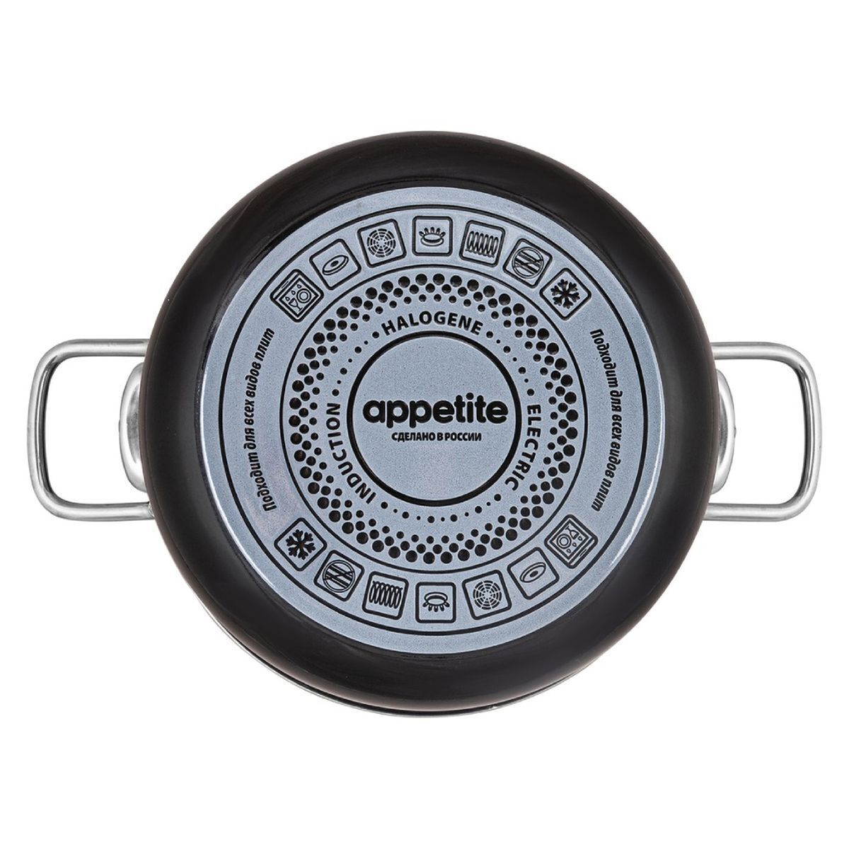 Изделие подходит для всех видов плит: газовых, электрических и индукционных. Гладкая не пористая поверхность посуды обеспечивает простой и легкий уход.