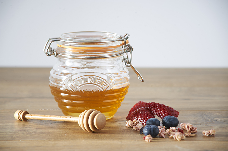 Банка из коллекции Clip Top для мёда со специальной ложкой из натурального дерева в подарочной упаковке. Банки из коллекции выполнены из стекла и украшены фирменный логотипом бренда Kilner. Они оснащены удобными, плотно закрывающимися крышками с силиконовой прокладкой для обеспечения герметичности, чтобы продукты сохраняли свою свежесть. Банки прекрасно подходят для хранения самых разных продуктов: варенье, соусы, мёд, кофе, сахар, мука, чай, леденцы, соленья и т.д. Банки также можно использовать в качестве декора или для хранения приятных мелочей и принадлежностей для рукоделия.