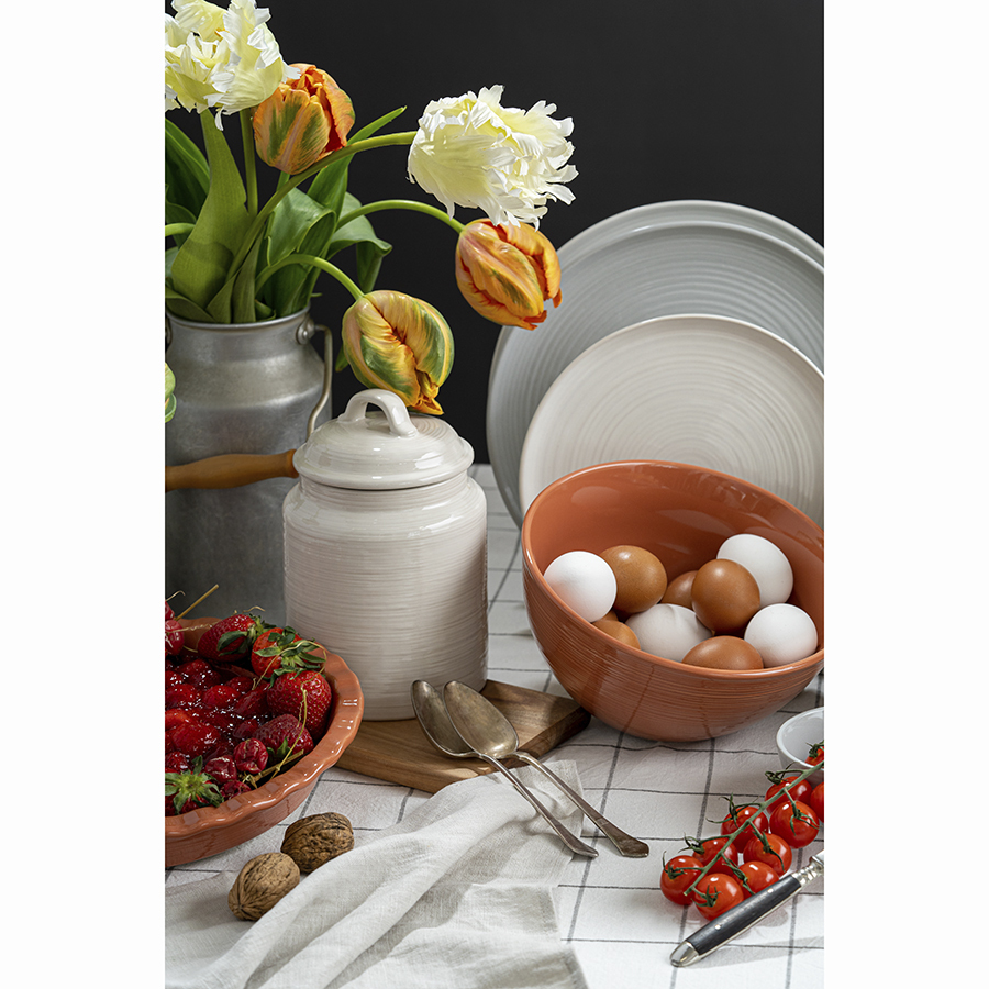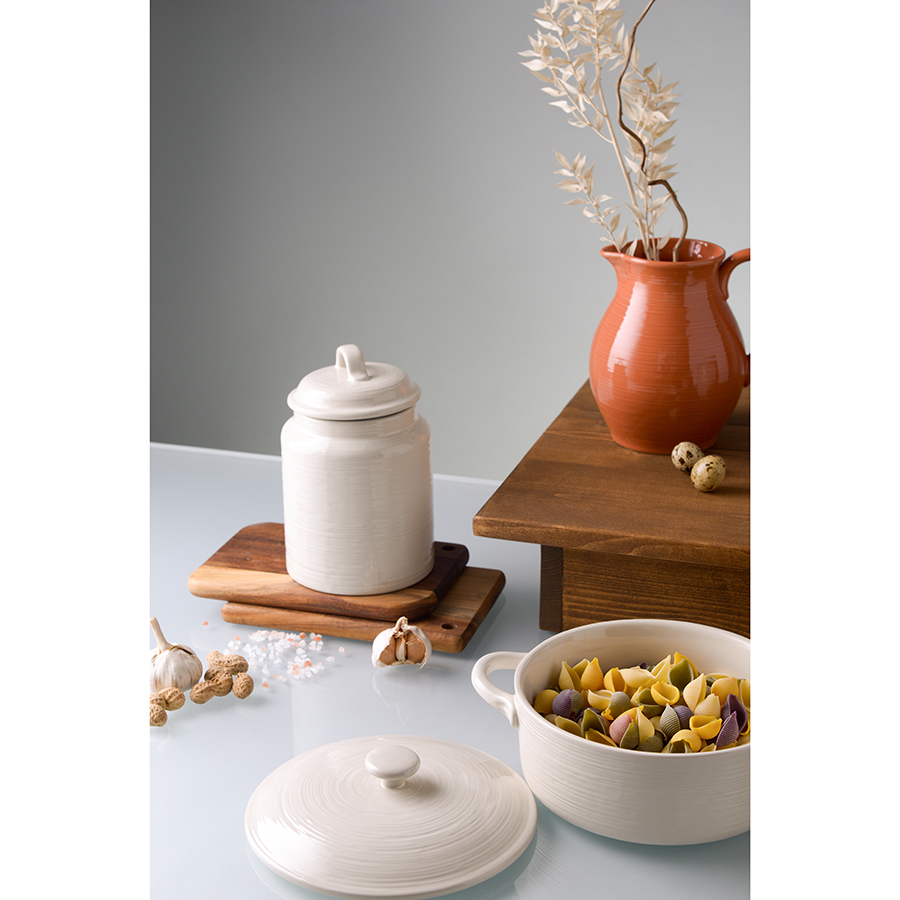 Банка для хранения из коллекции In The Village – прекрасный способ привнести в интерьер кухни нотки изысканной простоты уютного деревенского стиля. Емкость выполнена из экологичной каменной керамики. Ударопрочный, устойчивый к перепадам температуры материал гарантирует изделию долгий срок службы. Покрытие глазурью обеспечивает декоративный вид и дополнительную защиту от внешних воздействий. Банку можно использовать под крупы, чай, орехи и другие сыпучие продукты.