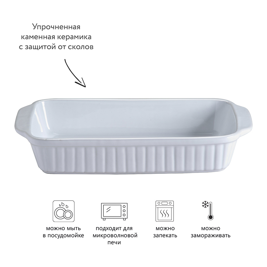 Для производства изделия мастера используют качественную каменную керамику, которая отличается высокой жаропрочностью. Поверхность блюда покрыта глазурью, устойчивой к образованию сколов, царапин и трещин. Удобные ручки облегчат извлечение разогретой формы из духовки с использованием прихваток.