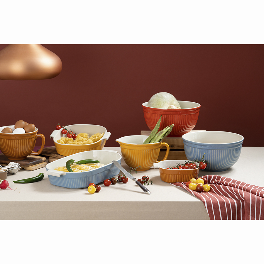Емкость для запекания серии Soft Ripples из жаропрочной каменной керамики идеально подходит для приготовления выпечки, а также тушения и томления продуктов. За счет быстрого и равномерного прогревания формы блюда хорошо пропекаются, получаются сочными и сверху покрываются аппетитной корочкой. Наличие ручек обеспечивает аккуратное извлечение готовой пищи из духовки и удобное ее перемещение. Благодаря природным антипригарным свойствам материала не требуется добавление большого количества масла. Керамическая посуда является экологичной, не деформируется, не впитывает запахи и загрязнения. Рельефный узор на внешней поверхности стенок и интересное цветовое сочетание делают дизайн оригинальным.