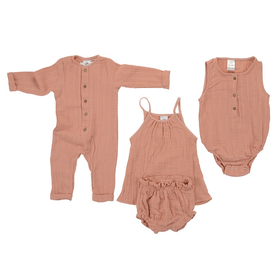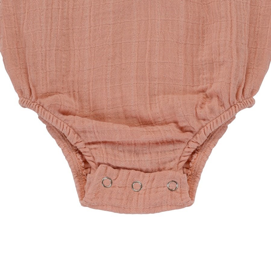 Боди из хлопкового муслина цвета пыльной розы из коллекции Essential выполнен в универсальном дизайне. Благодаря широкой пройме и застежке на кнопках сниизу, его легко надевать и снимать. Для лучшего прилегания но ножках вставлены резинки. Естественная фактура ткани почти не требует глажки. Материал: органический хлопок. Он прочнее и мягче обычного, выдерживает больше стирок, лучше пропускает воздух и впитывает влагу, что особенно важно для детской кожи. Модель представлена несколькими размерами в трех цветах: серый, пыльная роза и горчица.