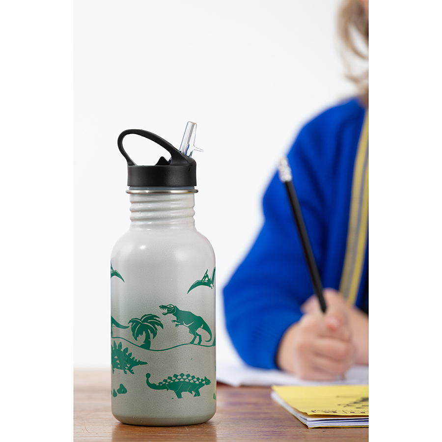 Бутылка из нержавеющей стали меняет цвет: при температуре ниже 18 °C она становится зеленой, а при температуре выше 18 °C — белой. Широкое горлышко позволяет класть в бутылку кубики льда. Откидная трубочка снижает риск проливания. Объем: 550 мл.