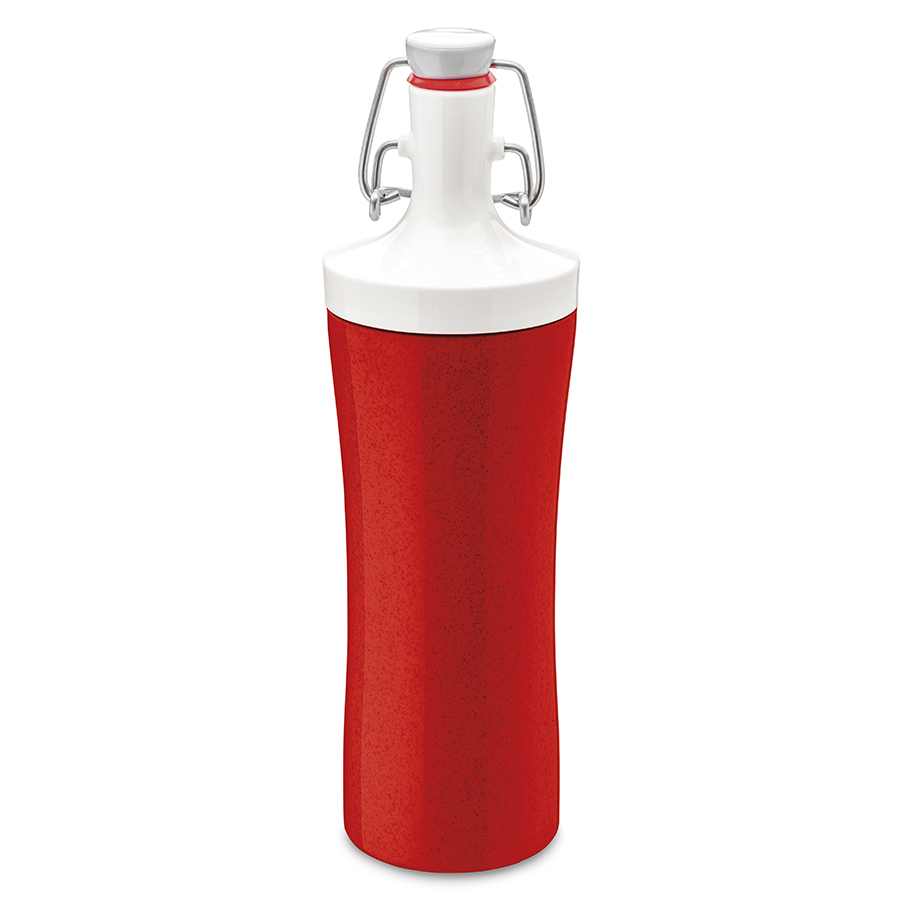 Крышка плотно прилегает к горлышку, благодаря металлическому механизму. За счет отсутствия уплотнительного кольца бутылка гигиенична и легко поддается уходу. Объем: 425 мл.