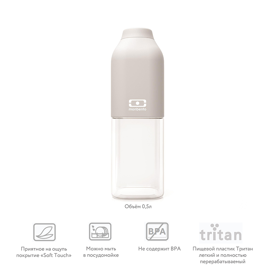 Бутылочка MB Positive представлена в многочисленных расцветках и имеет специальное матовое покрытие "soft-touch protect", приятное и мягкое на ощупь. Покрытие обладает высоким уровнем ударостойкости: не протирается и не царапается. Благодаря этому бутылочка сохранит свой прекрасный внешний вид и прослужит вам очень долго.