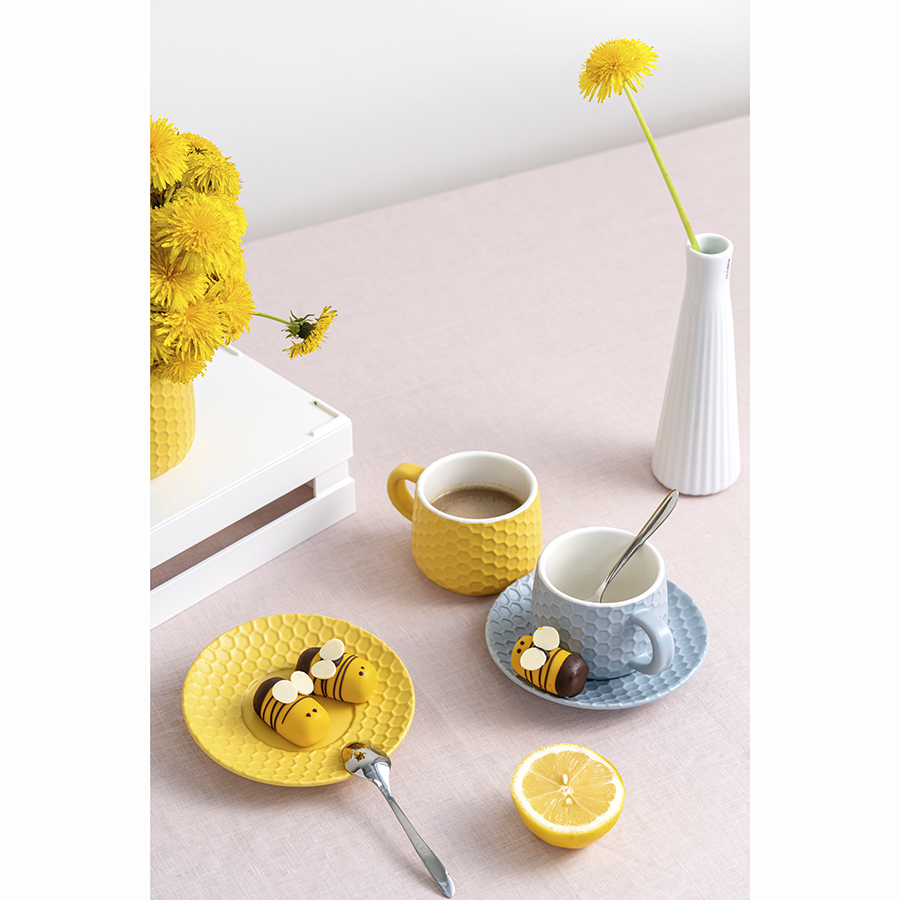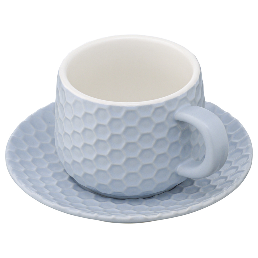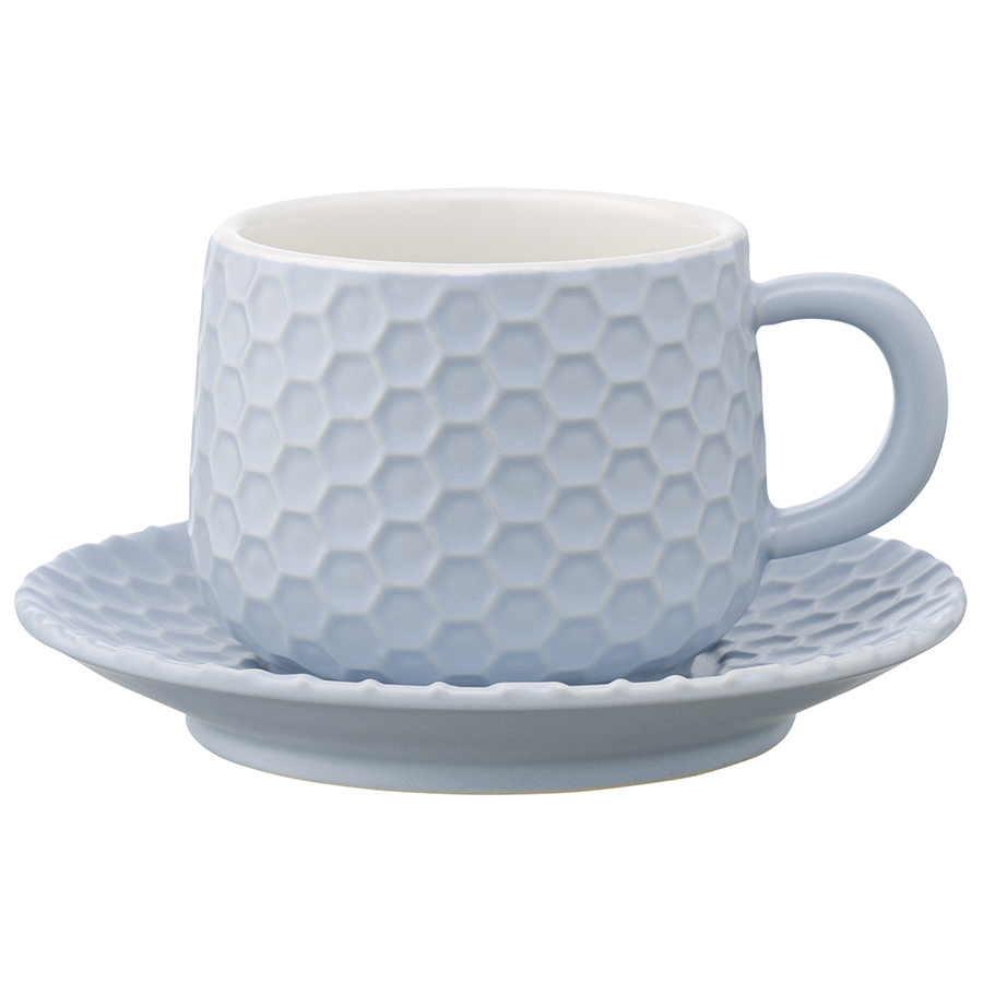 Чайная пара из коллекции Marshmallow – оптимальный вариант для тех, кто предпочитает сочетание практичности и необычного дизайна. Чашка и блюдце выполнены из каменной керамики с отличными эксплуатационными свойствами, среди которых экологичность, устойчивость к износу и температурным перепадам. Материал не впитывает запахи и загрязнения. Глазурованное покрытие легко очищается, обеспечивает изделиям декоративный вид и защищает от внешних воздействий. Узор, напоминающий соты, и интересная утолщенная ручка придают посуде особый шарм.