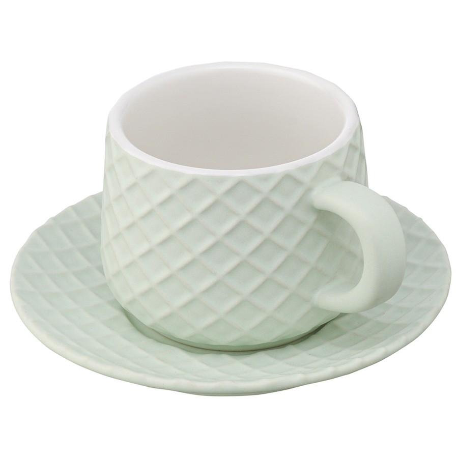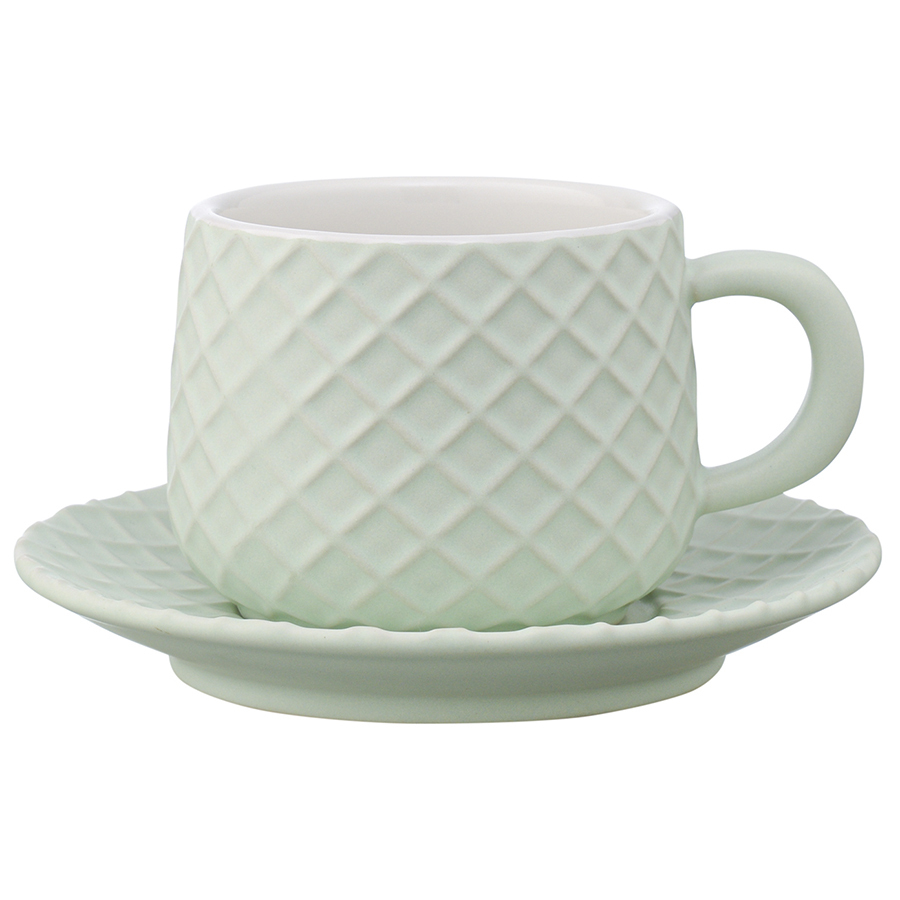 Чайная пара из коллекции Marshmallow – оптимальный вариант для тех, кто предпочитает сочетание практичности и необычного дизайна. Чашка и блюдце выполнены из каменной керамики с отличными эксплуатационными свойствами, среди которых экологичность, устойчивость к износу и температурным перепадам. Материал не впитывает запахи и загрязнения. Глазурованное покрытие легко очищается, обеспечивает изделиям декоративный вид и защищает от внешних воздействий. Узор, напоминающий соты, и интересная утолщенная ручка придают посуде особый шарм.