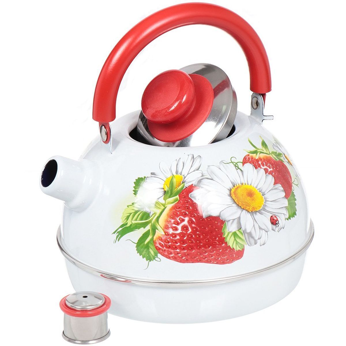 Чайник изготовлен из высококачественного стального проката, что обеспечивает долговечность использования. Внешнее эмалевое покрытие не вступает во взаимодействие с пищевыми продуктами. Такое покрытие защищает сталь от коррозии, придает посуде гладкую стекловидную поверхность и надежно защищает от кислот и щелочей. Чайник оснащен подвижной ручкой и крышкой, которая плотно прилегает к краю. Носик чайника оснащен съемным свистком, звуковой сигнал которого подскажет, когда закипит вода.