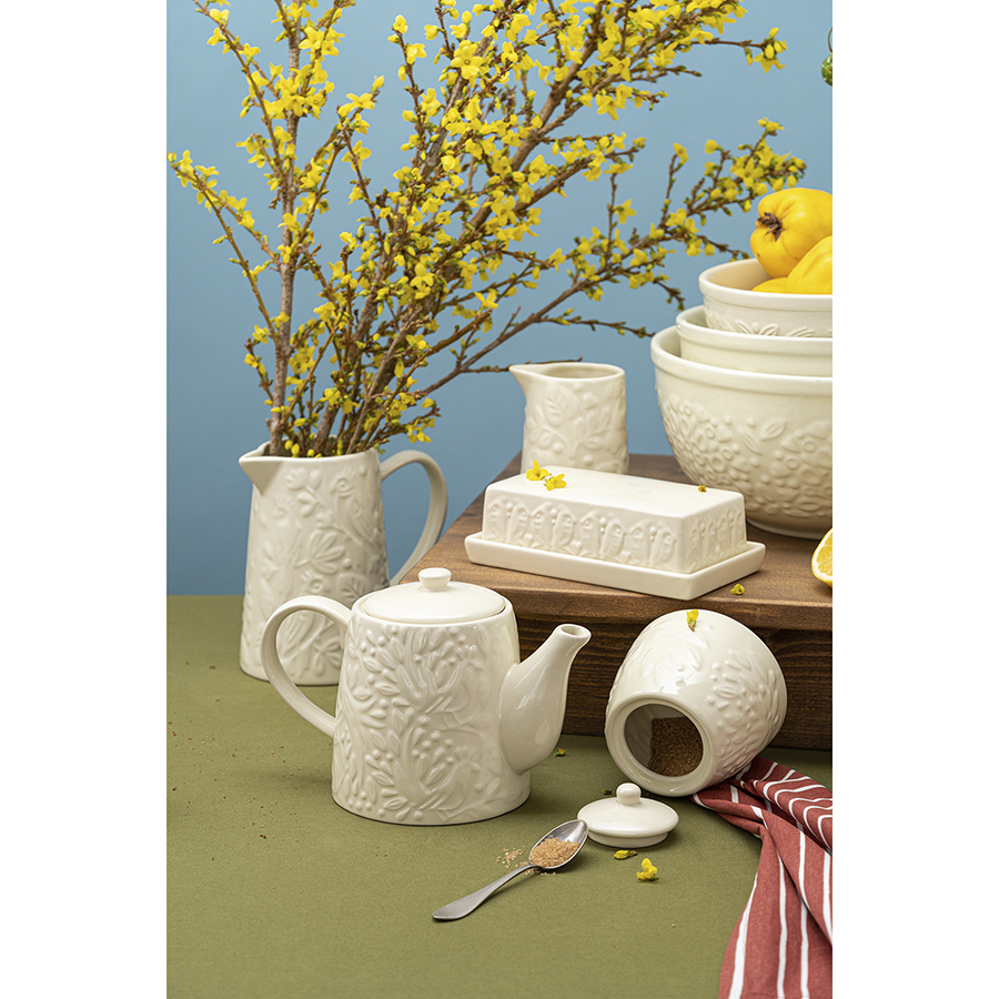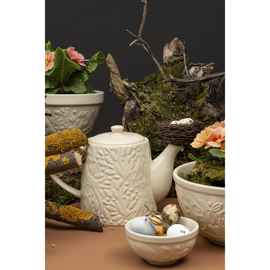 Чайник заварочный из коллекции Birds of Paradise – качественная посуда из экологичной каменной керамики, которая великолепно вписывается в любую сервировку и делает интерьер кухни более уютным. Отличительной особенностью серии является объемный узор природной тематики, добавляющий дизайну элегантные нотки. Благодаря высокой прочности и устойчивости материала к износу изделие не теряет привлекательный внешний вид на протяжении всего срока службы. Покрытие глазурью облегчает уход, обеспечивает декоративность и дополнительную защиту от внешних воздействий.