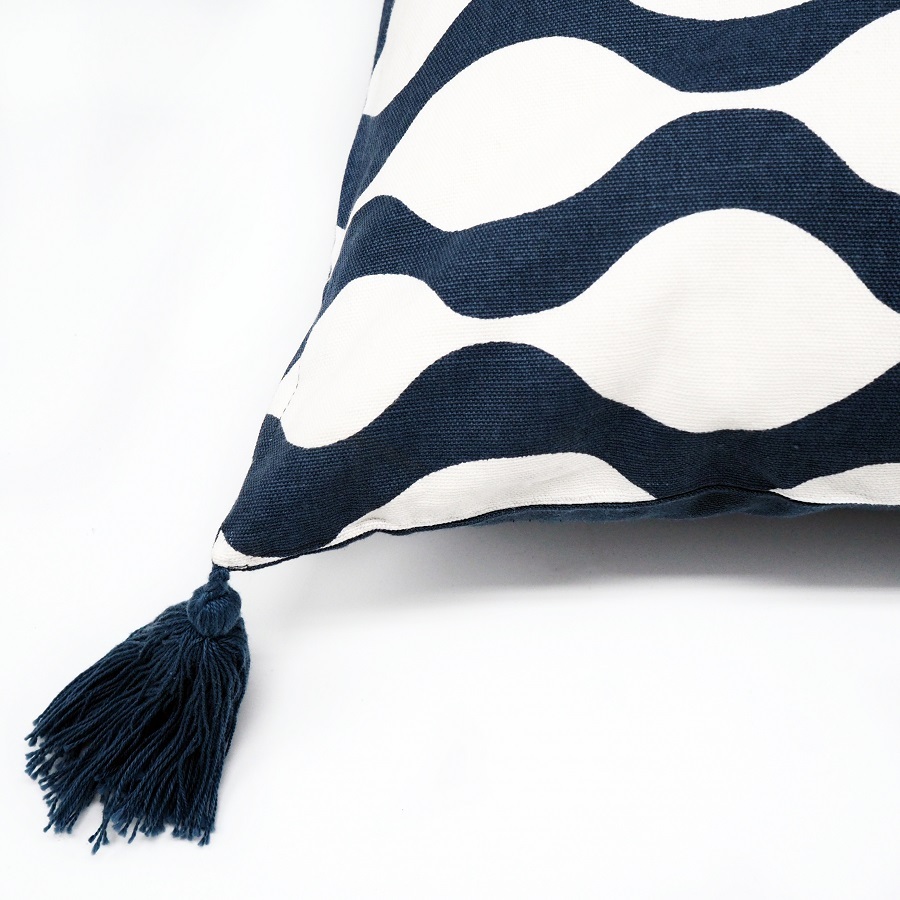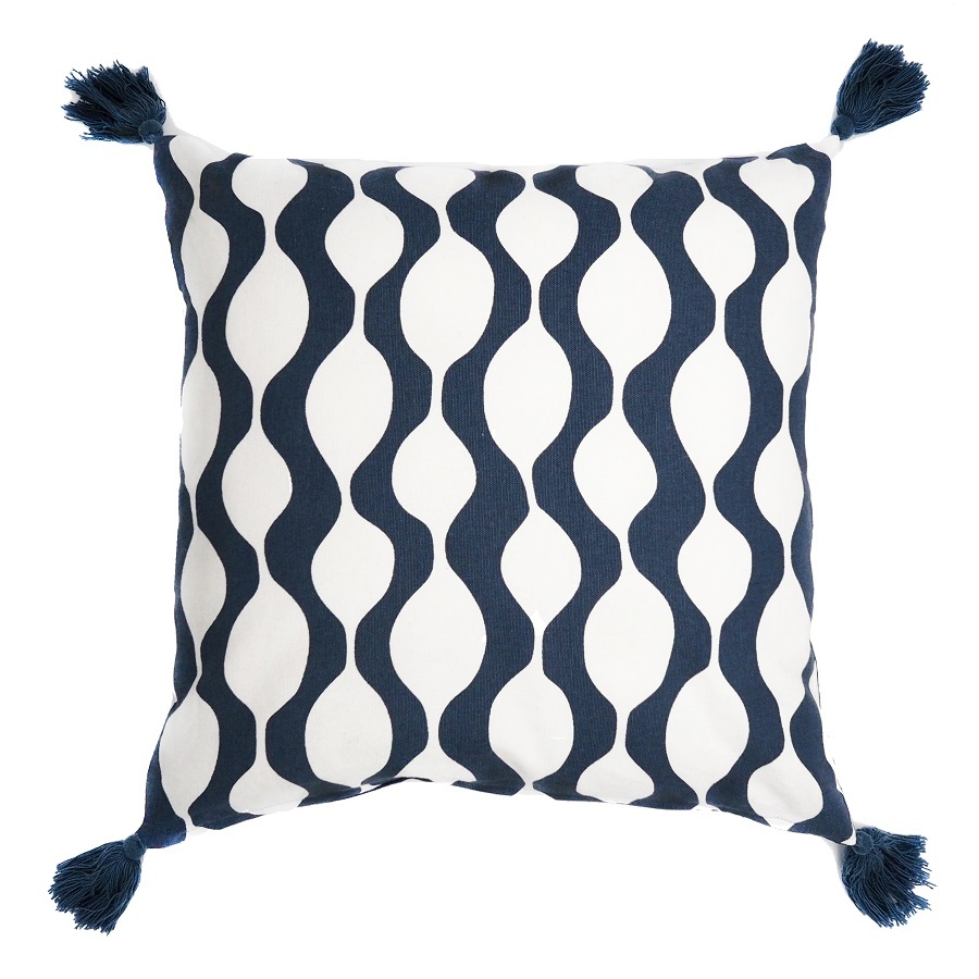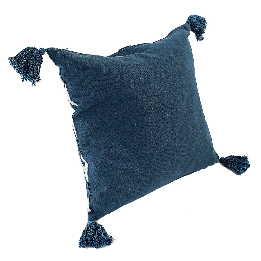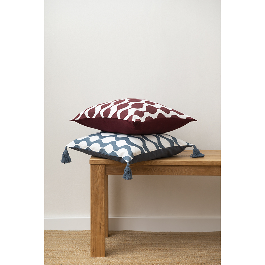 Чехол для подушки Traffic с кисточками серо-синего цвета из коллекции Cuts&Pieces освежит интерьер спальни или гостиной. Подушка в стильном чехле органично впишется в яркий фьюжн или станет акцентом в строгом минимализме. Модель из мягкого гипоаллергенного хлопка застегивается на потайную молнию сбоку.