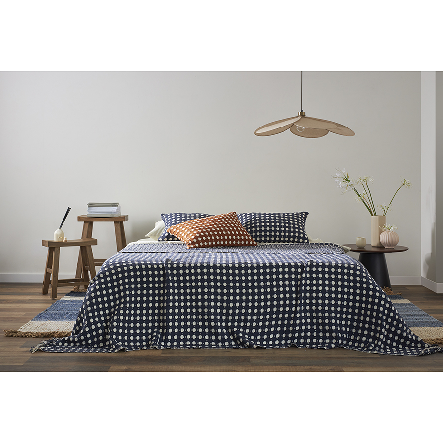 Чехол на подушку из хлопка Polka dots из коллекции Essential поможет создать атмосферу уюта и комфорта в вашем доме. Текстильное изделие темно-синего оттенка с классическим узором добавит стильный акцент в оформление любой комнаты и отлично впишется в различные дизайнерские решения.