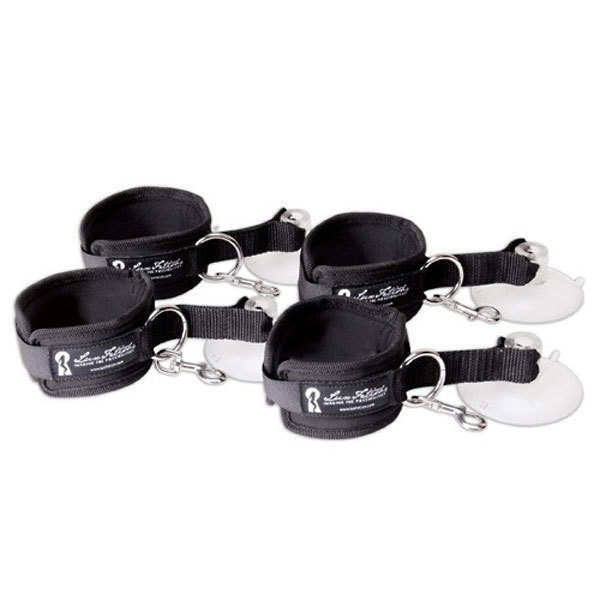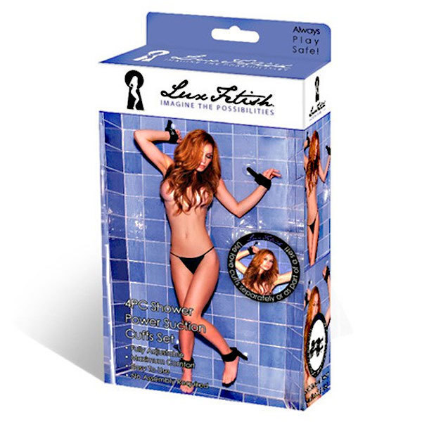 Четыре мягких браслета на липучке, к каждому из них прикреплена присоска! Отличный комплект для игр в душе или бассейне! Можно закрепить руки и ноги партнера так, как хочется Вам... Либо с помощью присосок склеить между собой наручники и поножи. Секс даже в душе должен быть разным! One size.