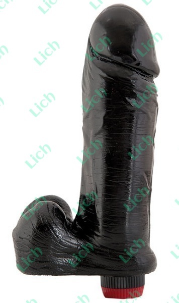 Чёрный вибратор с мошонкой, 22,8 см