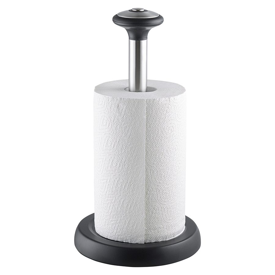 Держатель Mio – простой в использовании аксессуар для хранения и удобной эксплуатации рулонов с бумажными полотенцами. Сочетание элементов из металла и износостойкого пластика обеспечивает изделию привлекательный вид в течение всего срока службы и долговечность. Широкое основание круглой формы делает конструкцию устойчивой. За счет компактности и лаконичного дизайна модель органично смотрится в любом пространстве.