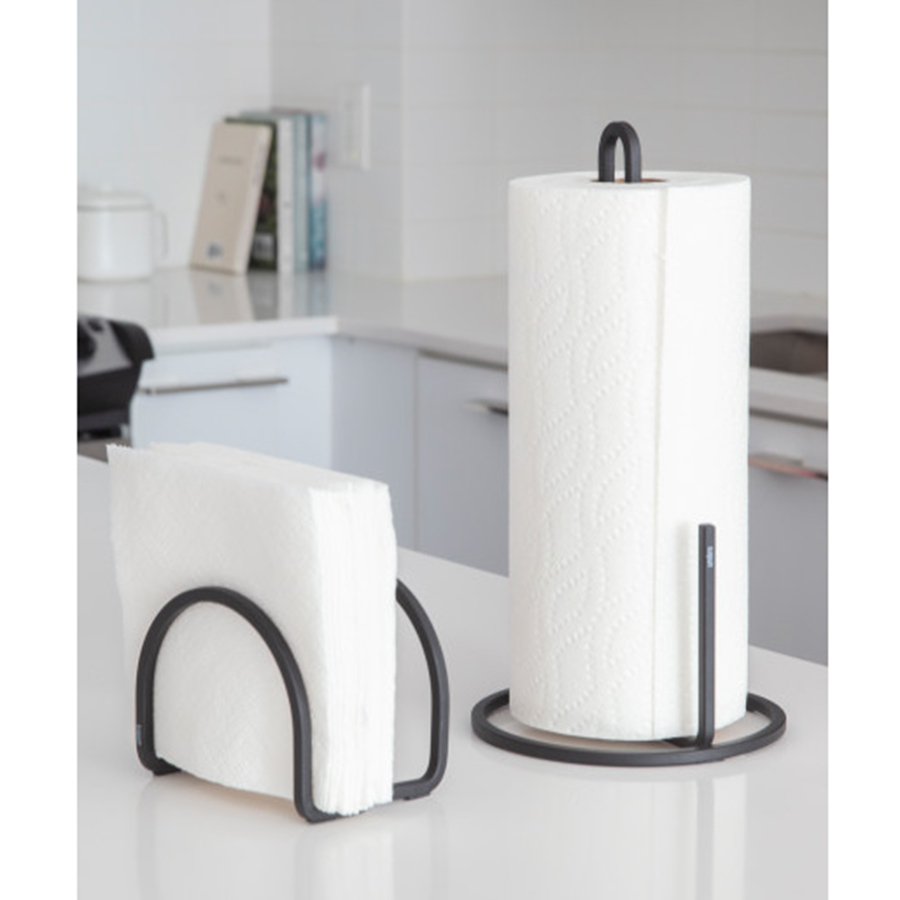 Держатель для бумажных полотенец Squire – современный аксессуар, который поможет навести порядок на кухне и сделает пространство более стильным и функциональным. Изделие выполнено из стальной проволоки, согнутой в графическую линию. Отличные эксплуатационные свойства материала, такие как высокая прочность и устойчивость к повреждениям обеспечивают конструкции долгий срок службы. Основание держателя дополнено специальным стержнем, который позволяет оторвать бумажное полотно нужного размера. Встроенная ручка облегчает переноску.