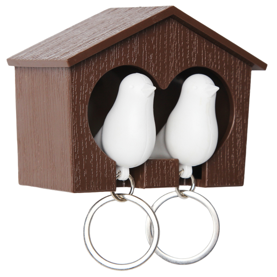 Ключница в виде домика Sparrow – незаменимый предмет в быту, который поможет удобно расположить ключи у входной двери, чтобы не пришлось каждый раз тратить время на их поиск перед выходом из дома. Необычные брелки в виде птичек легко помещаются внутрь домика и быстро находятся в сумке или кармане. Аксессуары еще оснащены свистком, так что можно оригинально оповестить домашних о своем приходе с работы. Держатель крепится к стене на двусторонний скотч или шурупы.