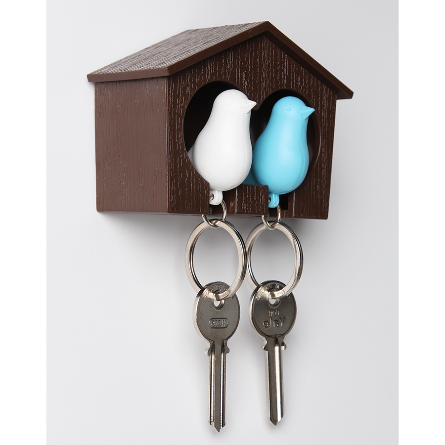 Ключница в виде домика Sparrow – незаменимый предмет в быту, который поможет удобно расположить ключи у входной двери, чтобы не пришлось каждый раз тратить время на их поиск перед выходом из дома. Необычные брелки в виде птичек легко помещаются внутрь домика и быстро находятся в сумке или кармане. Аксессуары еще оснащены свистком, так что можно оригинально оповестить домашних о своем приходе с работы. Держатель крепится к стене на двусторонний скотч или шурупы.