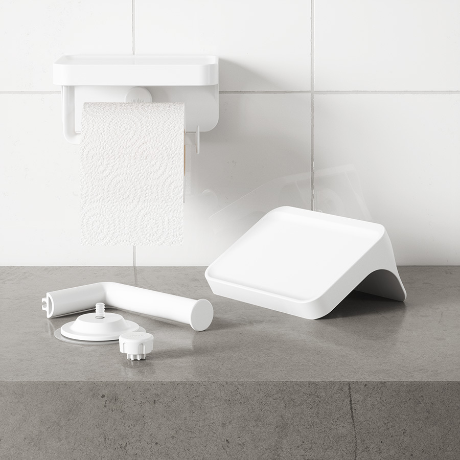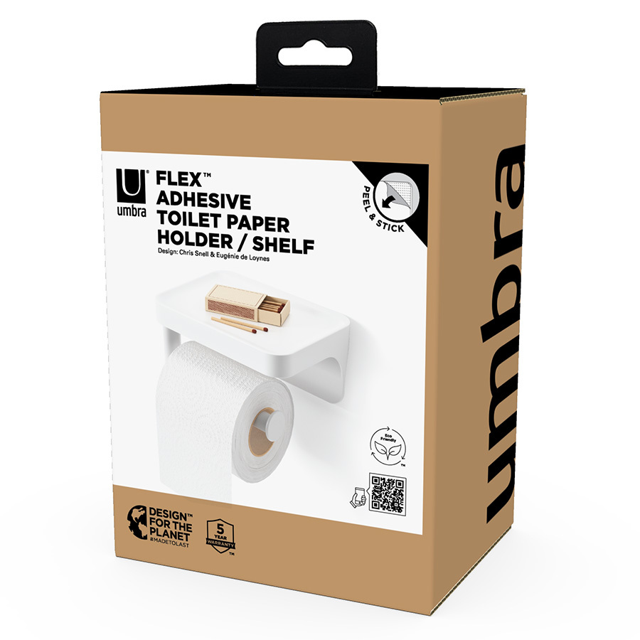 Держатель с полкой Flex Adhesive обеспечит удобное размещение туалетной бумаги в санузле и различных подручных предметов.