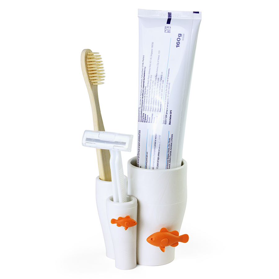 Стильный держатель для зубных щеток в морской тематике поможет навести порядок в ванной. Фигурки рыбок – это напоминание о необходимости заботиться об окружающей среде, сократить выбросы отходов в мировой океан, замедлить климатические изменения.