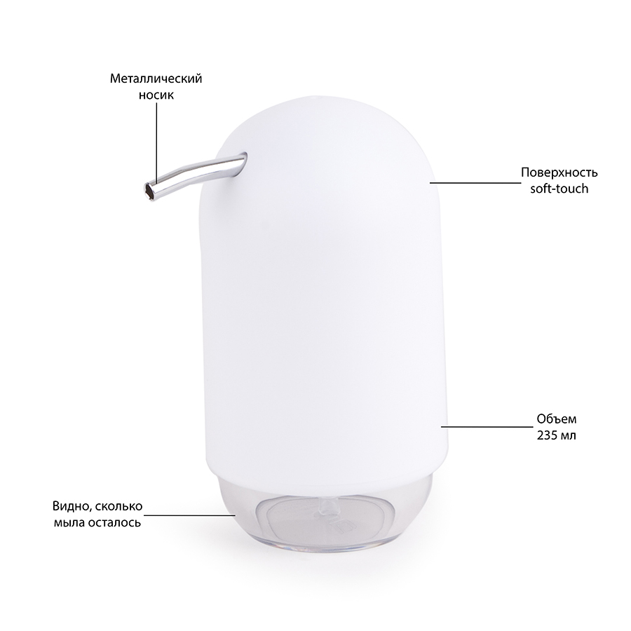 Материалы: полипропилен, акрил, термопластичная резина. Размеры: 10х7х14 см. Объем: 235 мл. Цвет: белый.