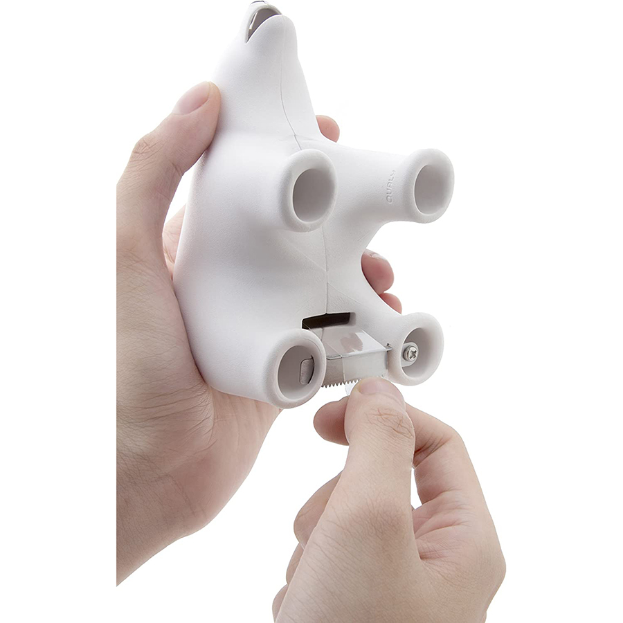Долой серость и скуку из офиса! Необычное и полезное решение для рабочего стола – милый медведь в два счета поможет справиться с неудобным липким скотчем. Катушка помещается внутрь аксессуара. Лента крепится на специальный держатель в лапах животного, что избавляет от утомительного поиска ее конца. Зазубренное лезвие помогает ровно оторвать кусок скотча нужного размера. Изделие выполнено из экологичного АБС-пластика. Материал безвреден для окружающей среды, не содержит бисфенол-А, устойчив к износу, подходит для вторичной переработки и не требует сложного ухода.