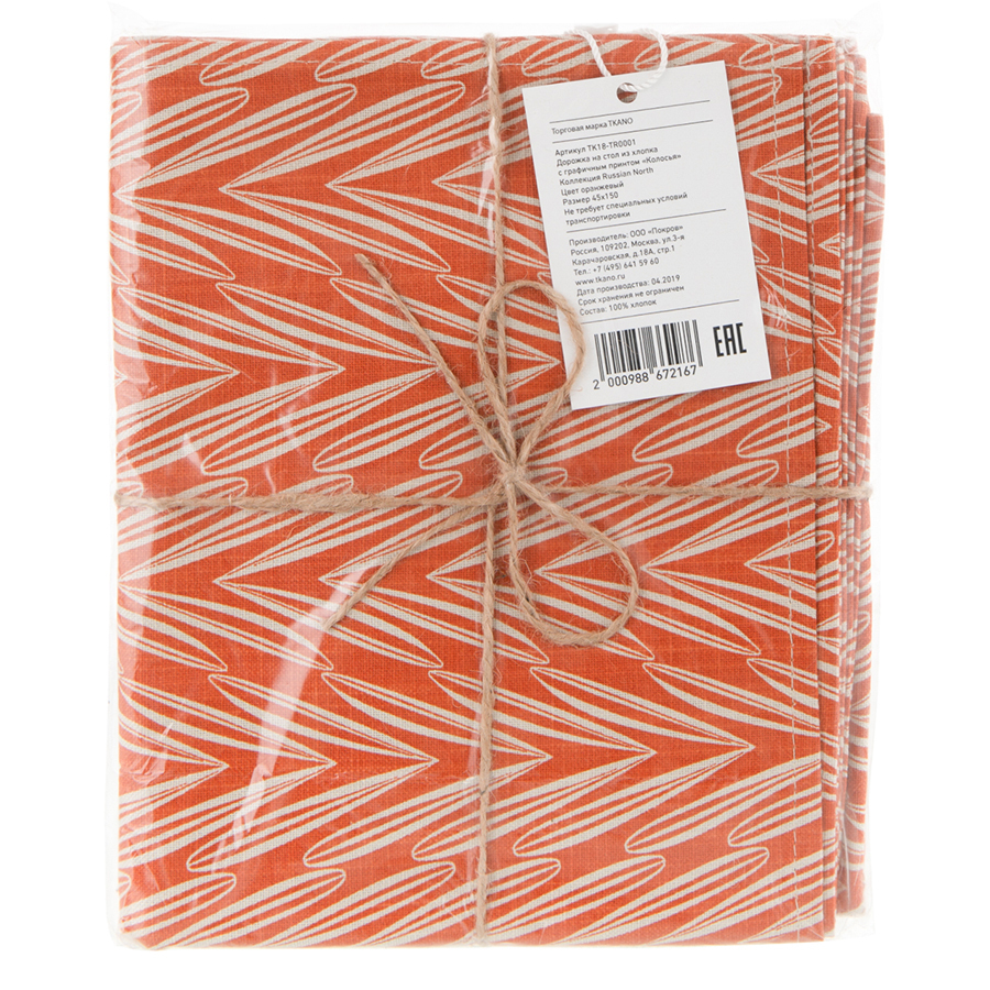 Дорожка на стол из хлопка с графичным принтом «Колосья» из коллекции Russian North – изысканное украшение праздничного стола. За счет элегантного дизайна изделие органично впишется в любой современный интерьер. Материал – экологически чистый хлопок. Оформление проработано таким образом, чтобы максимально сохранить природные мотивы в узоре и натуральные цвета. Изделие органично впишется как в классический, так и в современные скандинавские интерьерные стили и минимализм. Тип плетения: кулирка. Плотность материала - 290 GSM. Размер: 45х150 см ! Максимальная температура стирки 40° C ! Гладить при максимальной температуре 150° C ! Возможна барабанная сушка при низкой температуре ! Не отбеливать ! Возможна сухая чистка
