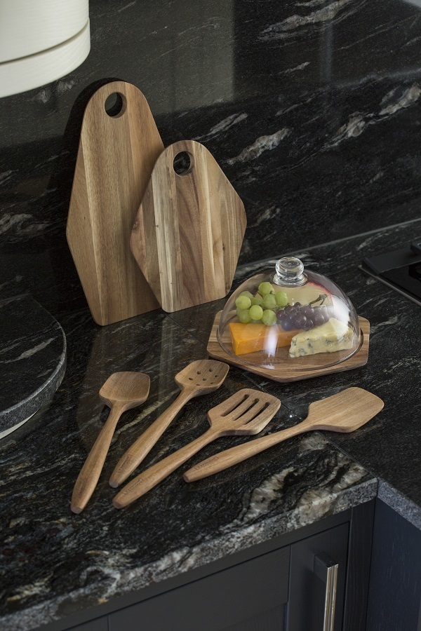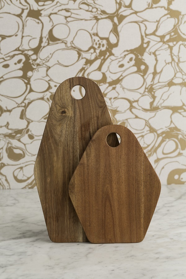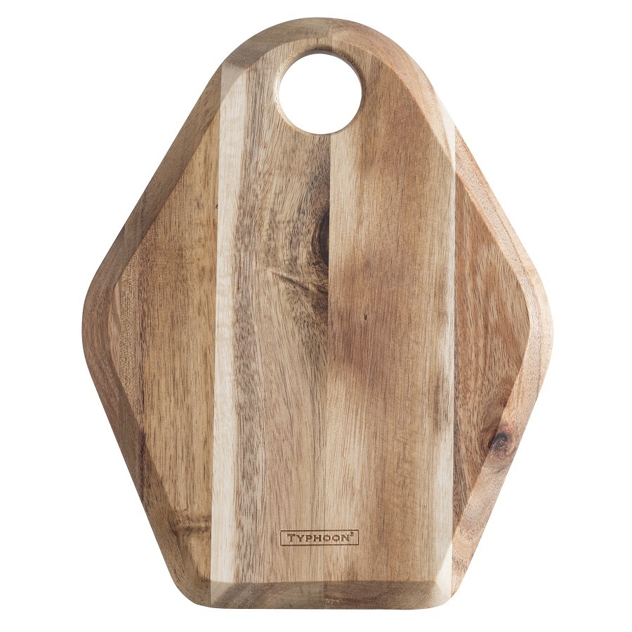 Кухонная доска Modern Kitchen изготовлена из прочного дерева в виде пятиугольника со скошенными углами. Это необходимый на домашней или ресторанной кухне аксессуар, оборудованный удобным желобком для сбора жидкости. Доской можно пользоваться для нарезки овощей, фруктов, мяса, колбасных изделий, сыра и т.д. Размеры: длина – 25 см, ширина – 20 см.