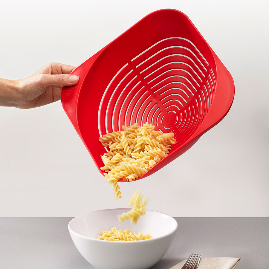 Стильный и практичный дуршлаг удобно использовать для мытья самых разных продуктов и слива воды уже приготовленных блюд, таких как макаронные изделия, брокколи, цветная капуста и т.д. Дуршлаг удобно держать за боковые ручки как одной, так и двумя руками. Он выполнен из пластика и идеально подходит для мытья ягод, фруктов, овощей и зелени. Особенности и преимущества: - простой и быстрый слив жидкости - встроенные боковые ручки - яркий стильный цвет - объём 3 л DUO — новая линейка стильных и эргономичных аксессуаров для кухни от Joseph Joseph. Дизайнеры бренда выявили основные проблемы, возникающие в процессе готовки, и создали уникальную коллекцию DUO для привлечения широкого круга покупателей. Они разработали облегчённый дизайн бестселлеров Joseph Joseph, которые соответствуют самым высоким показателям по практичности и функциональности. Все аксессуары выполнены из высококачественных и прочных материалов и станут фаворитами на любой кухне.