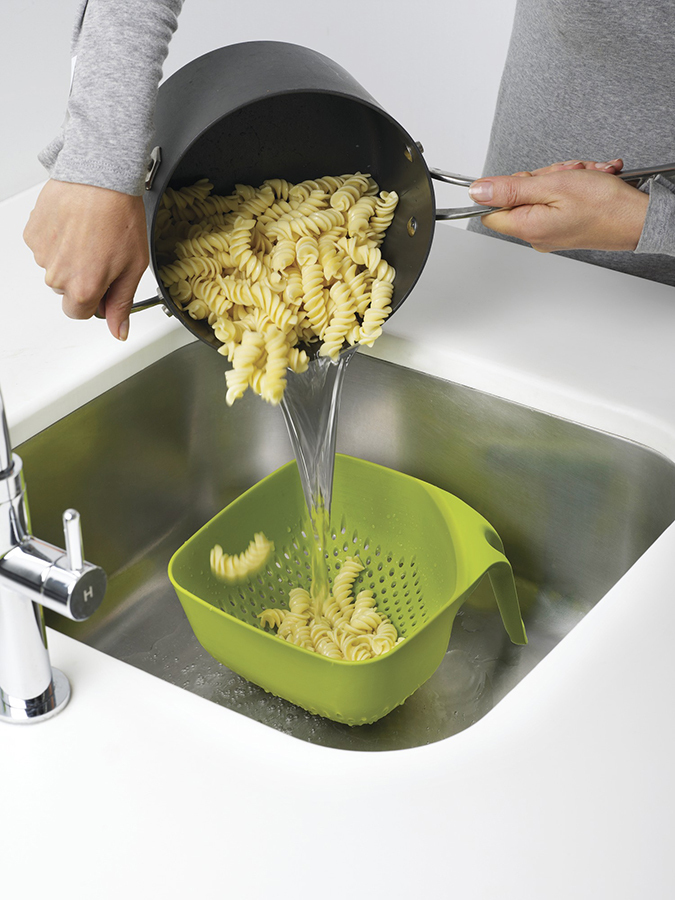 Дуршлаги Square оснащены обновлёнными эргономичными рукоятками, которые вставляются одна в другую для компактного хранения. Их вертикальное расположение обеспечивает устойчивость на ровных поверхностях стола, раковины или полки. Дуршлаг Square удобно держать одной рукой. Квадратная форма и вертикальные отверстия позволяют быстро сливать жидкость. Дуршлаги выполнены из пластика и идеально подходят для мытья ягод, фруктов, овощей и зелени. Модель представлена в красном, зелёном, сером, чёрном и белых цветах.