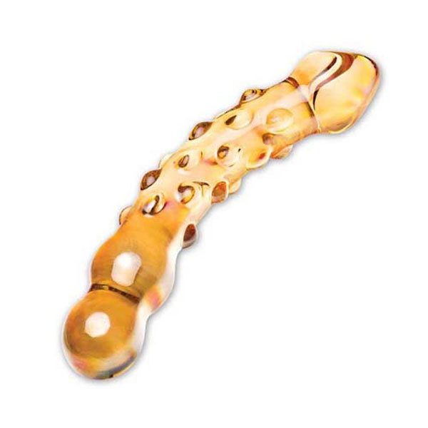 Красивый блестящий стимулятор, покрытый массажными шариками, объемными дугами. Угол изгиба игрушки легко помогает найти точку G. Длина золотого стимулятора: 18 см. Диаметр: 3,5 - 4 см.